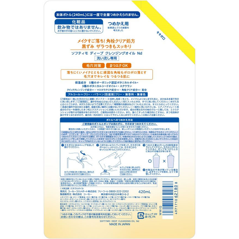 コーセーコスメポート ソフティモ ディープクレンジングオイル 詰替 420mL 1個(ご注文単位1個)【直送品】