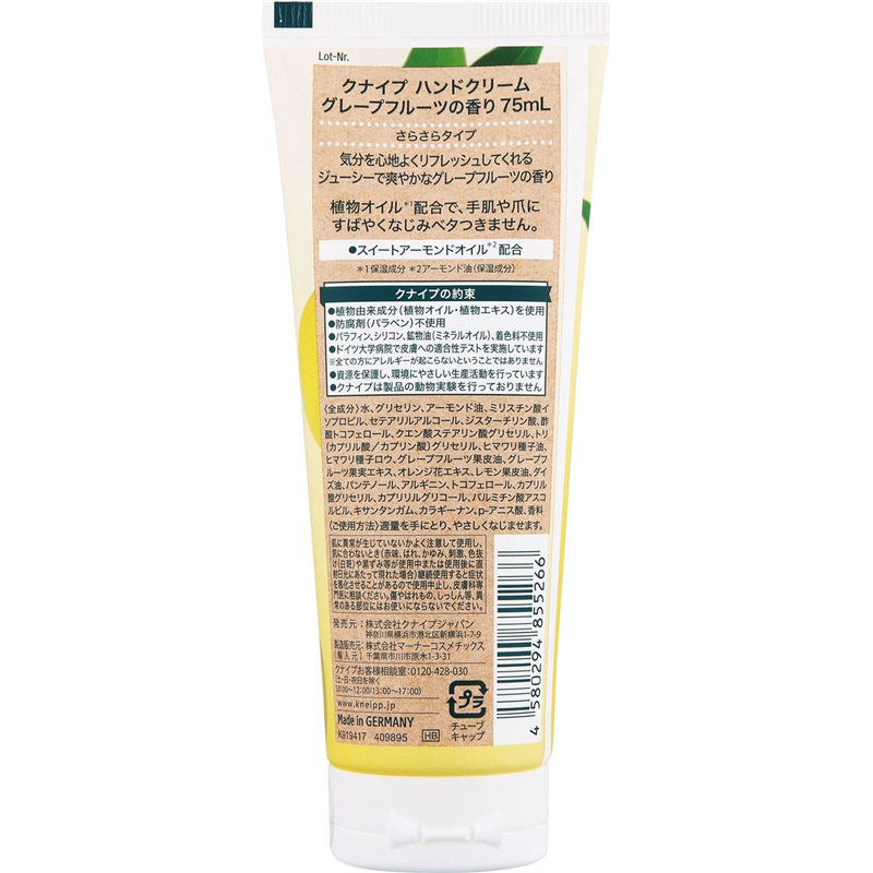 クナイプジャパン クナイプハンドクリーム グレープフルーツの香り 75mL 1個(ご注文単位1個)【直送品】