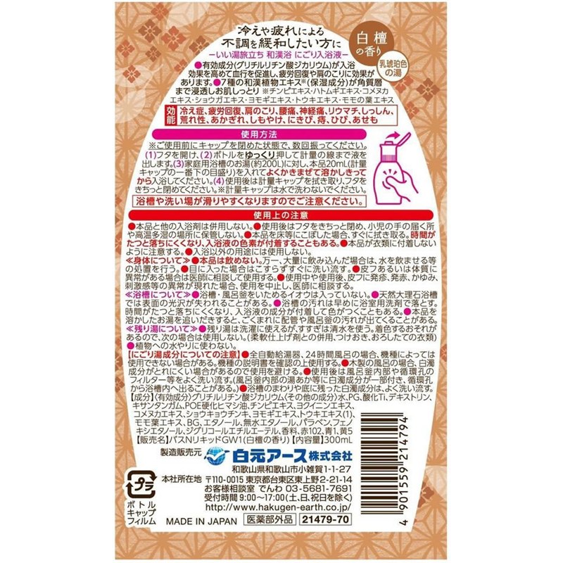 白元アース いい湯旅立ち和漢浴 薬用入浴液 白檀 300mL 1個(ご注文単位1個)【直送品】