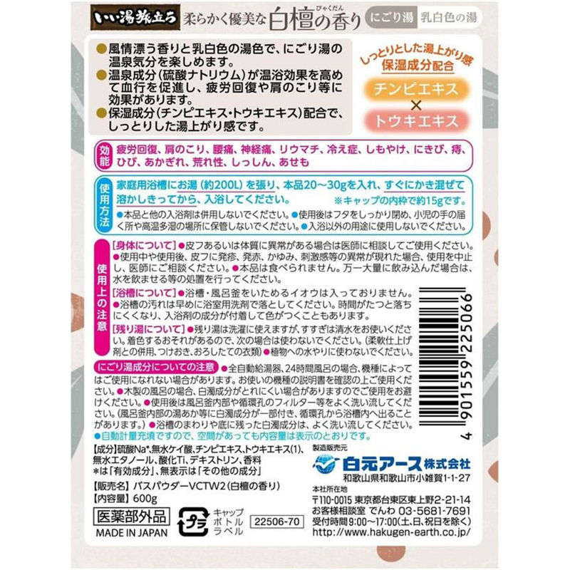 白元アース いい湯旅立ちボトル 白檀の香り600g 1個(ご注文単位1個)【直送品】