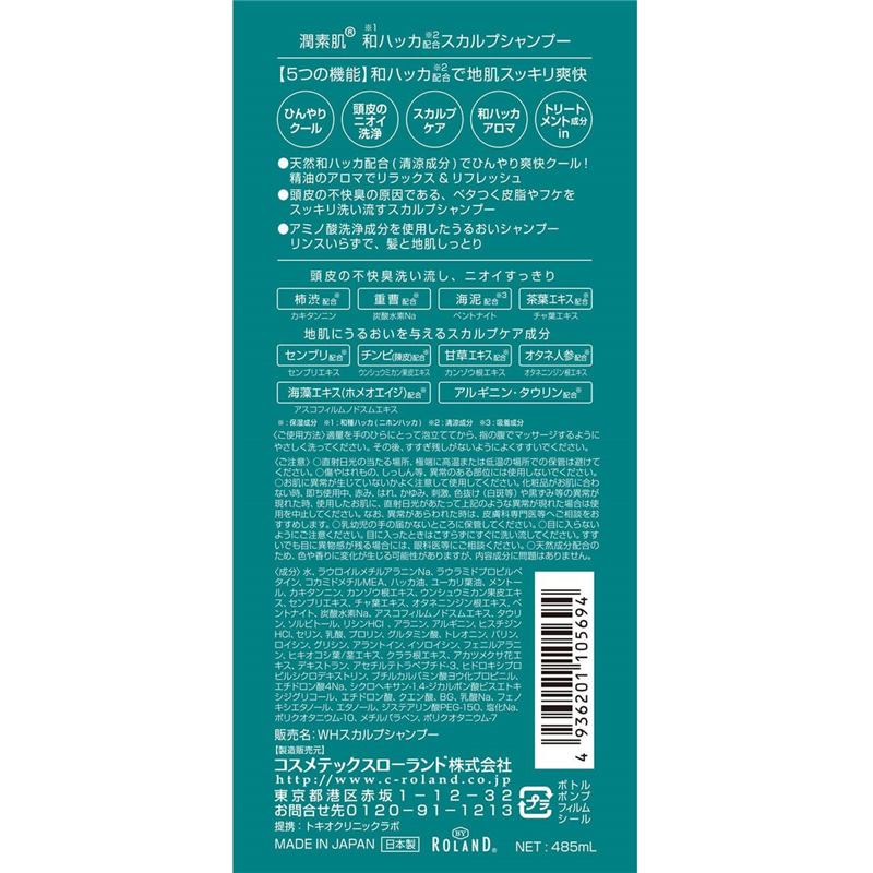コスメテックスローランド 潤素肌 和ハッカ スカルプシャンプー 485mL 1個(ご注文単位1個)【直送品】