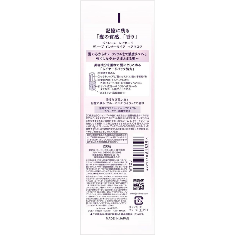 コーセーコスメポート ジュレーム レイヤード ディープインナーリペア ヘアマスク 1個(ご注文単位1個)【直送品】