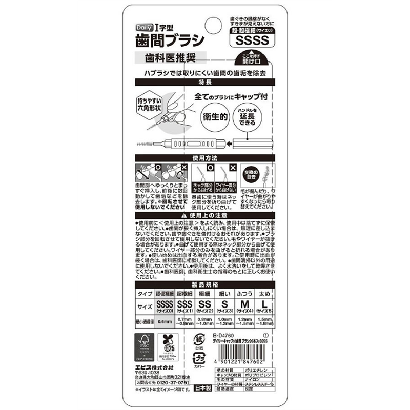 エビス デイリーキャップ付I字歯間ブラシ SSSS 20本入 1パック(ご注文単位1パック)【直送品】