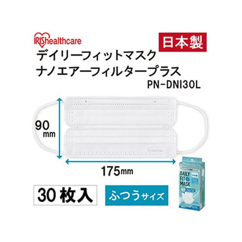 アイリスオーヤマ DAILY FIT MASK ナノエア ふつう ホワイト 30枚入 1パック(ご注文単位1パック)【直送品】