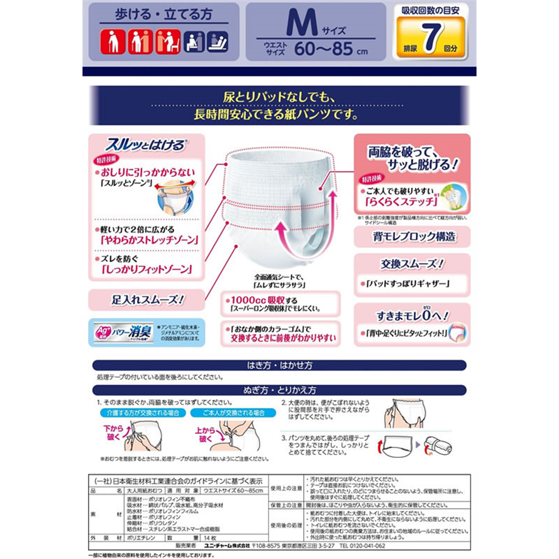 ユニチャーム ライフリー尿とりパッドなしでも長時間安心パンツM14枚 1パック(ご注文単位1パック)【直送品】