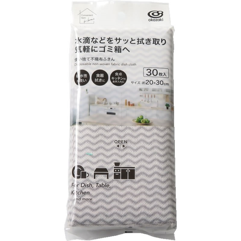 オカザキ 使い捨て不織布ふきん 約20×30cm 30枚入 1パック(ご注文単位1パック)【直送品】