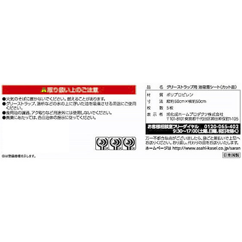 旭化成 グリーストラップ用油吸着シート グリースクリーン カット 5枚 1個(ご注文単位1個)【直送品】