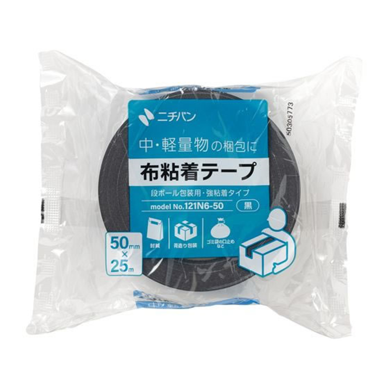 ニチバン 布粘着テープ 50mm×25m 黒 121N6-50 1巻(ご注文単位1巻)【直送品】