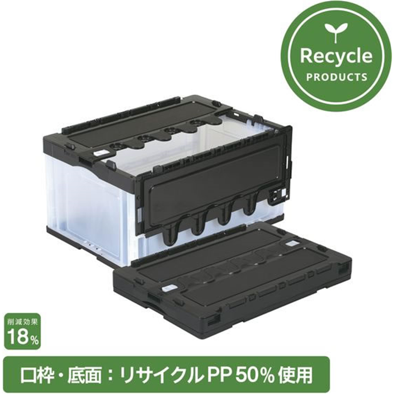 岐阜プラスチック工業 リス 折りコン 蓋有り 75L ブラック透明 5個 1箱(ご注文単位1箱)【直送品】