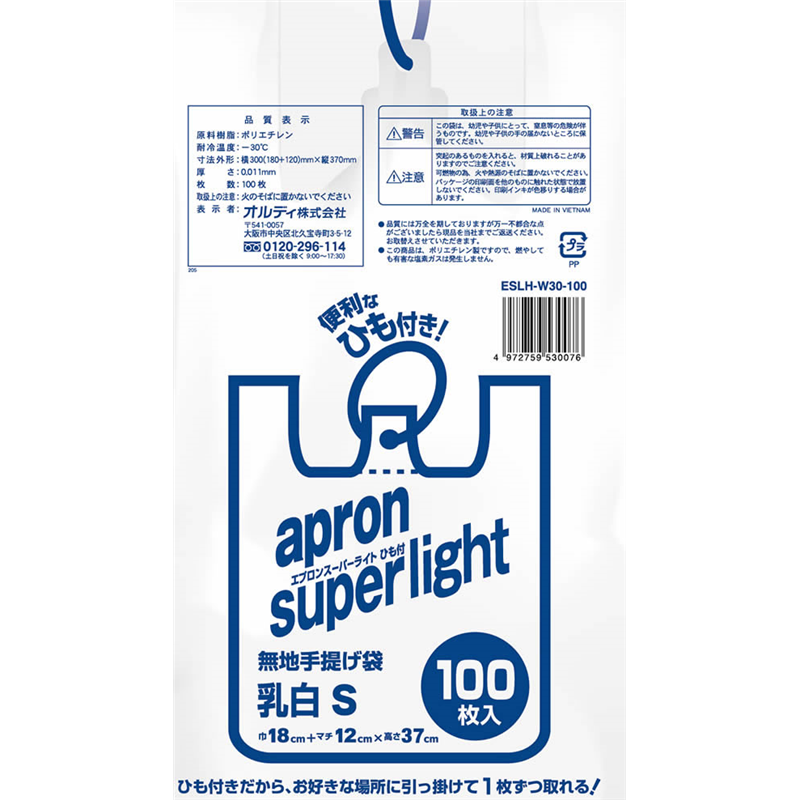 オルディ エプロンスーパーライト ひも付 S 30号 乳白 100枚 1袋(ご注文単位1袋)【直送品】