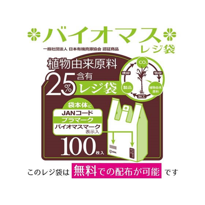 ハウスホールドジャパン バイオマスレジ袋 Sサイズ 100枚入 TU30 1袋(ご注文単位1袋)【直送品】