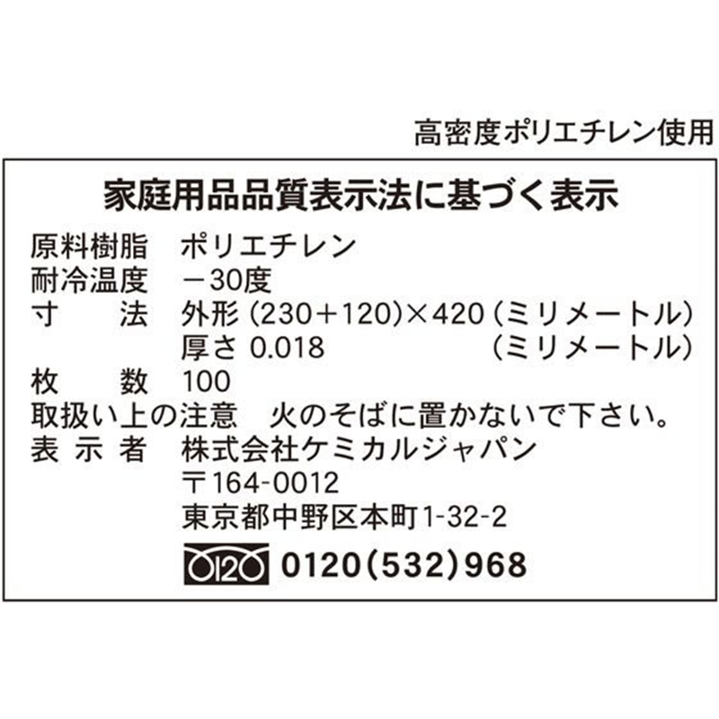 ヨコ450(300+150)×タテ540mm/厚さ:0.02mm