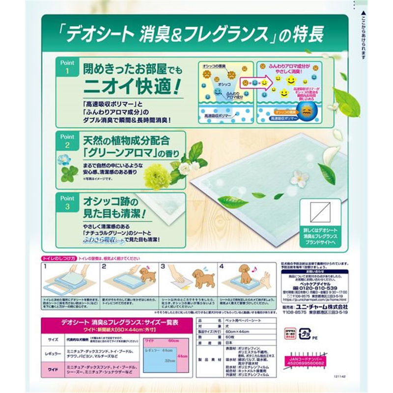 ユニ・チャーム デオシート 消臭 グリーン ワイド 60枚 1個(ご注文単位1個)【直送品】
