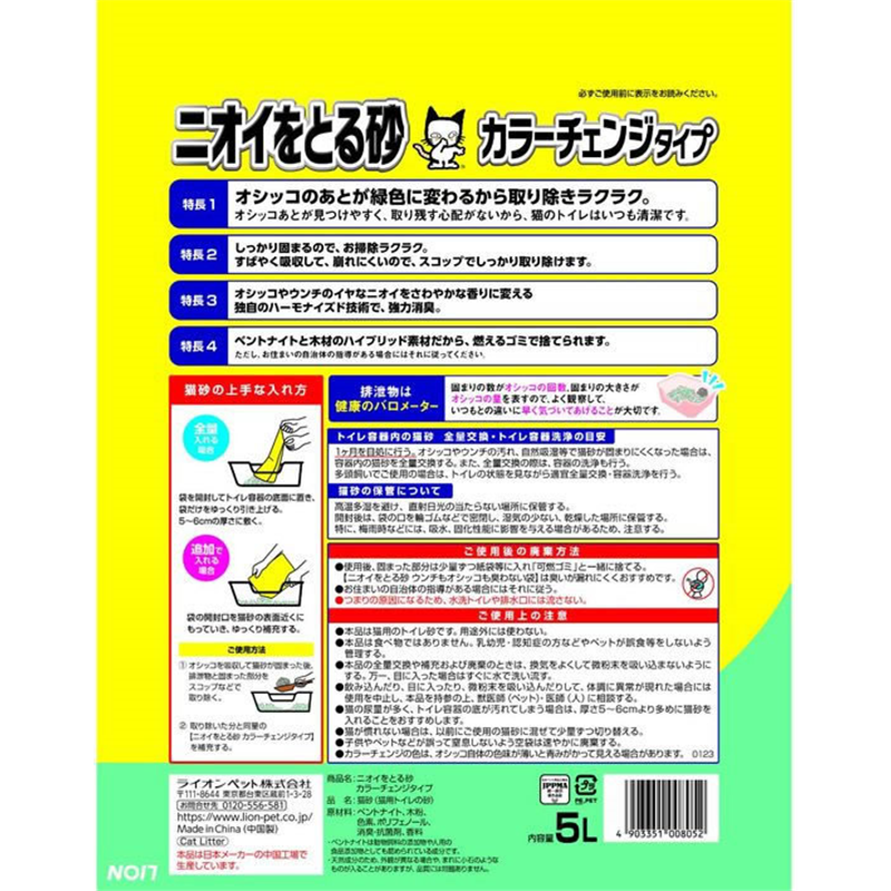 LION ニオイをとる砂 カラーチェンジタイプ 5L 6袋 1箱(ご注文単位1箱)【直送品】