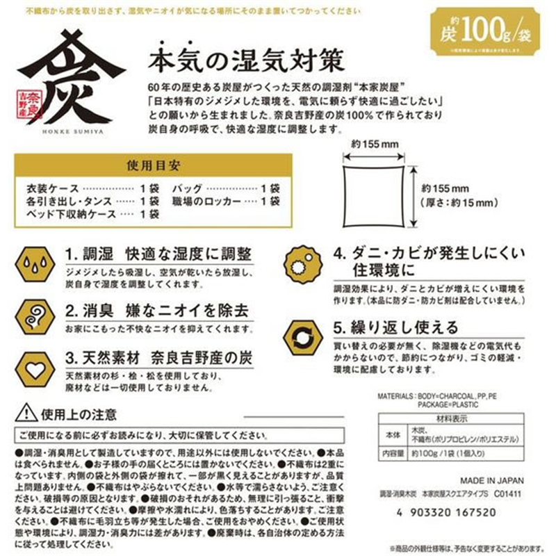 レック 調湿・消臭木炭 本家炭屋 スクエアタイプ S C01411 1個(ご注文単位1個)【直送品】