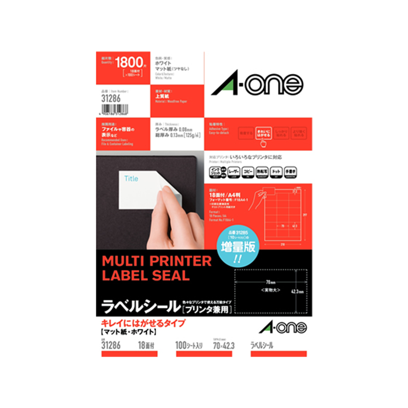 ![エーワン ラベルシール[再剥離]A4 18面 上下余白 100枚 31286 1冊(ご注文単位1冊)【直送品】](https://shimojima.jp/img/goods/Z/2501601170874.jpg)