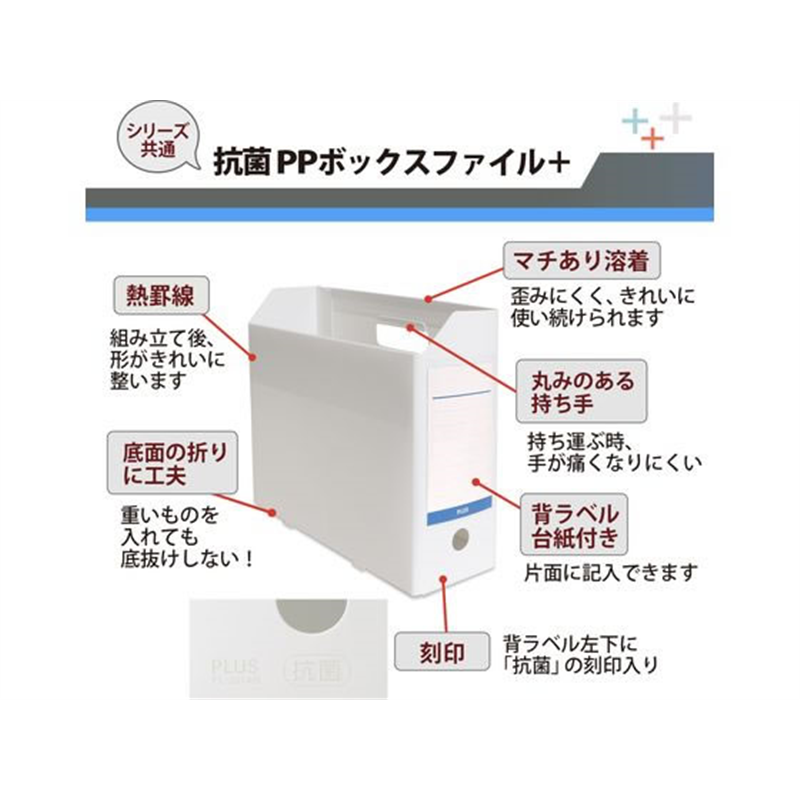 プラス 収納ボックス PPボックスファイル 抗菌 A4 ホワイト 76526 1冊(ご注文単位1冊)【直送品】