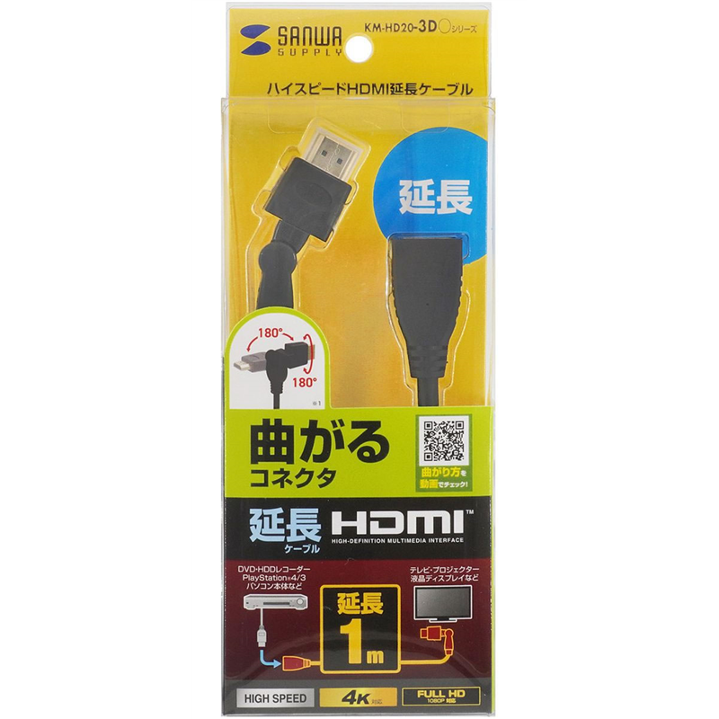 サンワサプライ ハイスピードHDMI延長ケーブル 1m KM-HD20-3DEN10N 1本(ご注文単位1本)【直送品】