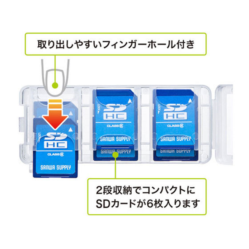 サンワサプライ SDカードケース 6枚収納 クリア FC-MMC23SDCL 1個(ご注文単位1個)【直送品】