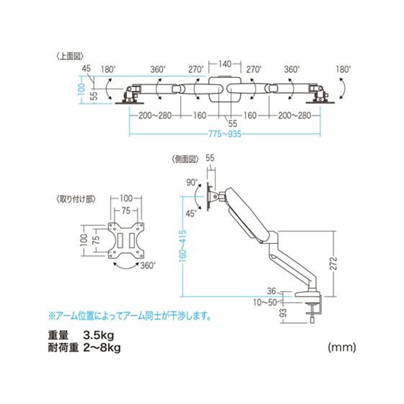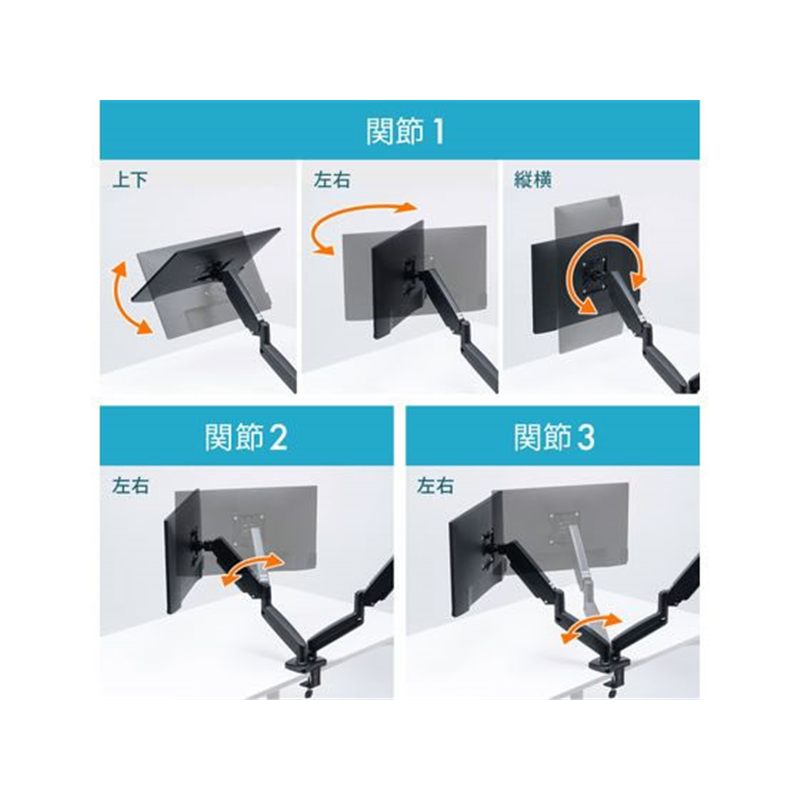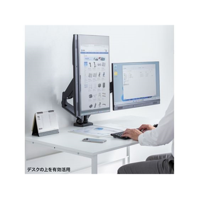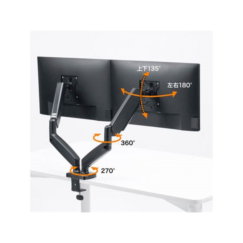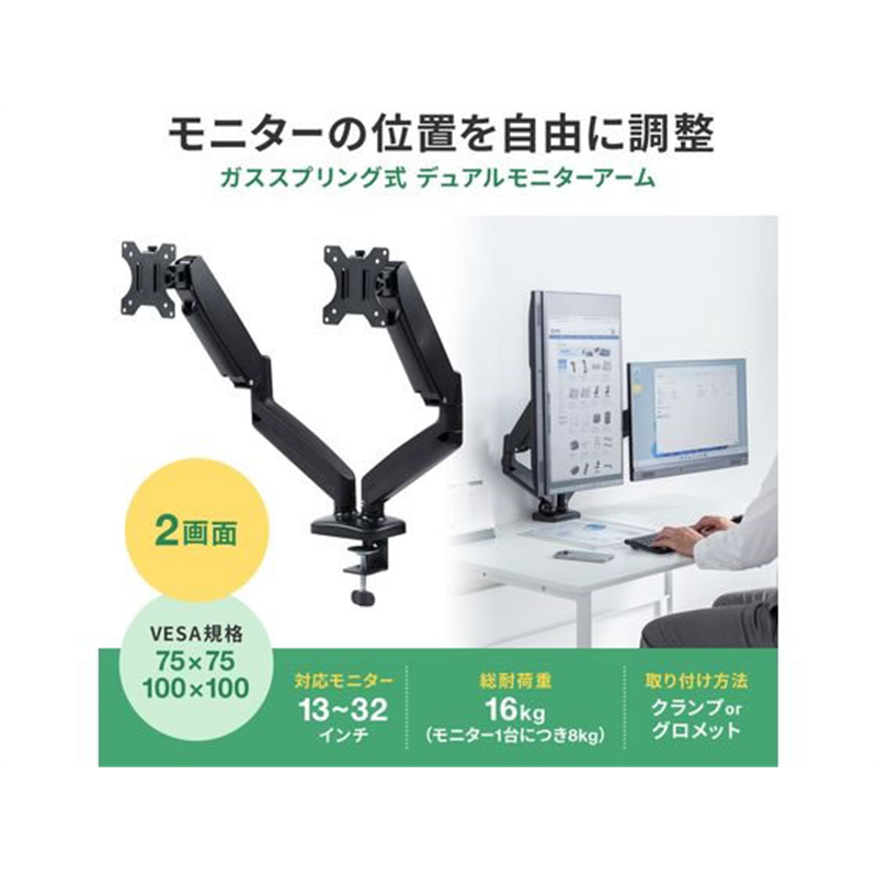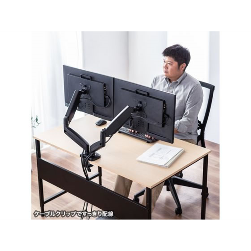 サンワサプライ モニターアーム(ガススプリング式・デュアル) CR-LAC2405BK 1台(ご注文単位1台)【直送品】