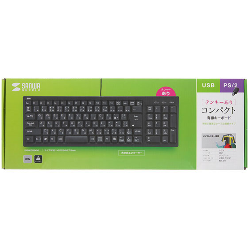 サンワサプライ コンパクトキーボードUSB&PS/2 テンキー付 SKB-KG2BKN2 1個(ご注文単位1個)【直送品】
