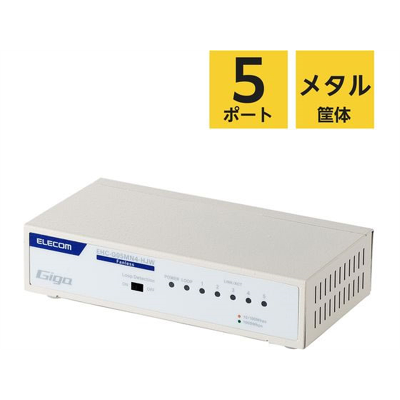 エレコム スイッチングハブ LANハブ 5ポート ホワイト EHC-G05MN4-HJW 1個(ご注文単位1個)【直送品】