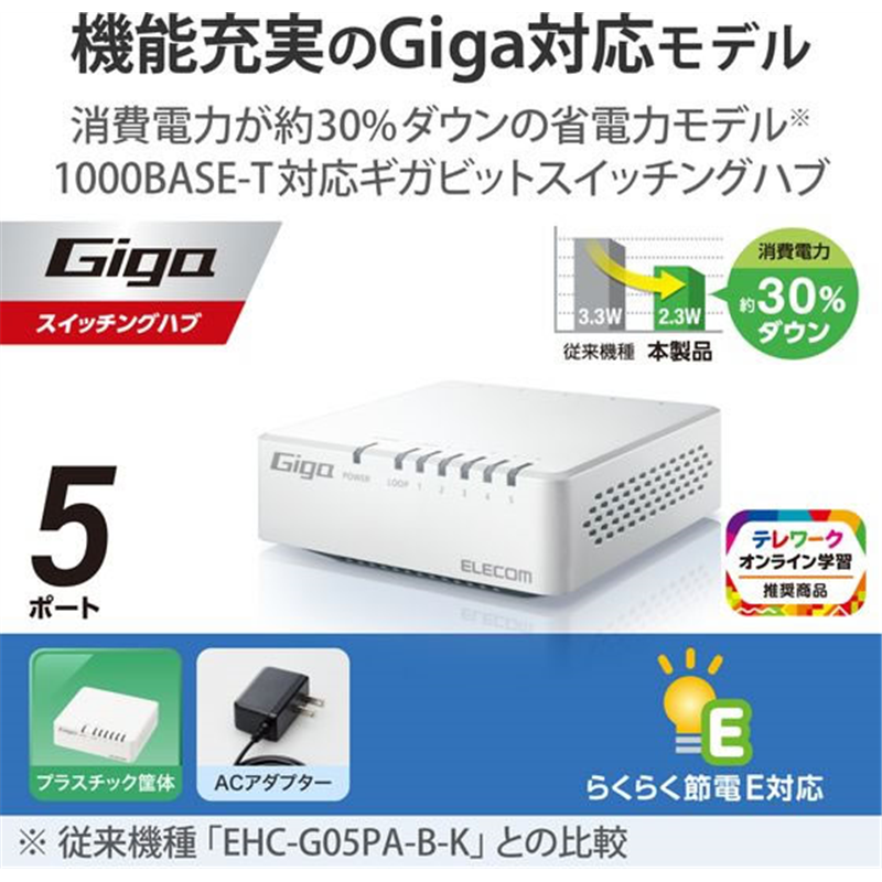 エレコム スイッチングハブ 5ポート EHC-G05PA4-W 1個(ご注文単位1個)【直送品】