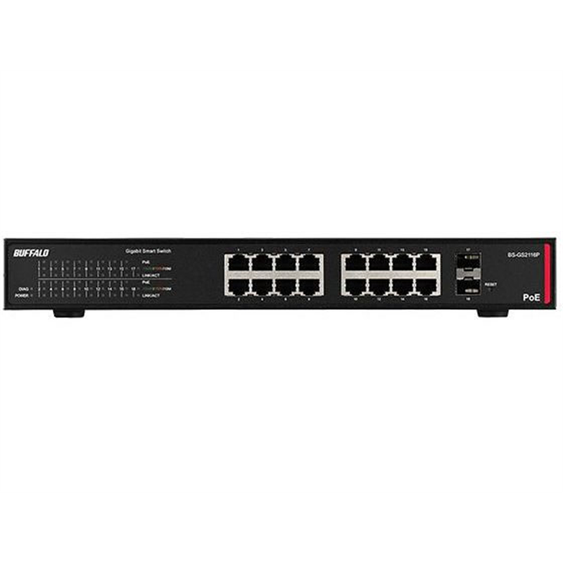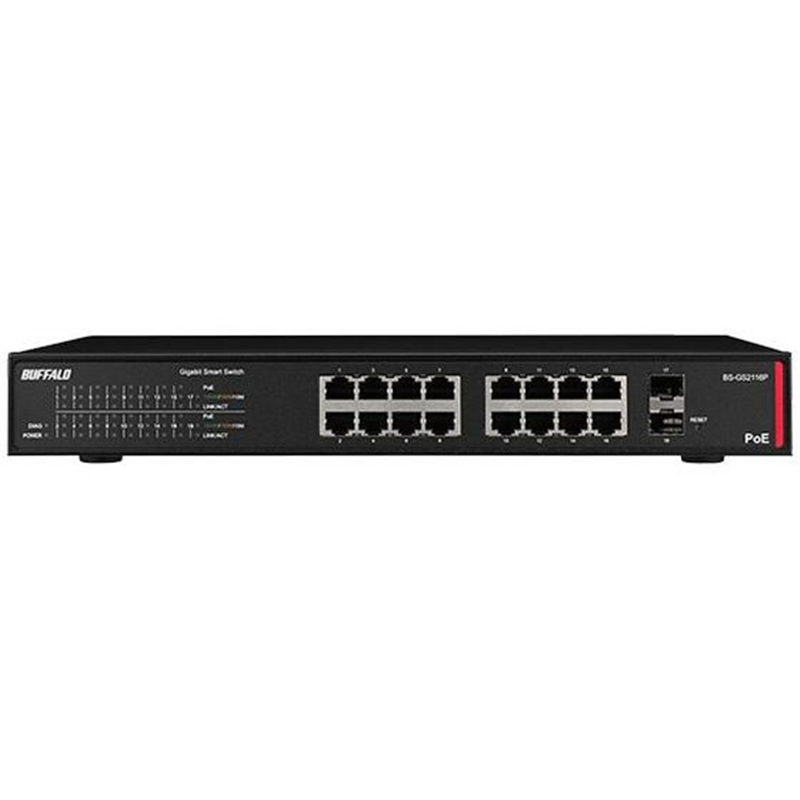バッファロー 法人向け レイヤー2 Giga PoE スマートスイッチ 16ポート BK 1台(ご注文単位1台)【直送品】
