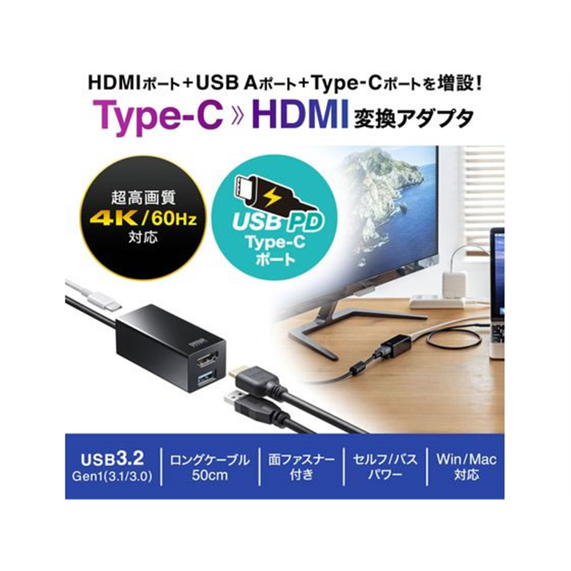 サンワサプライ USB Type-Cハブ付き HDMI変換アダプタ 1個(ご注文単位1個)【直送品】