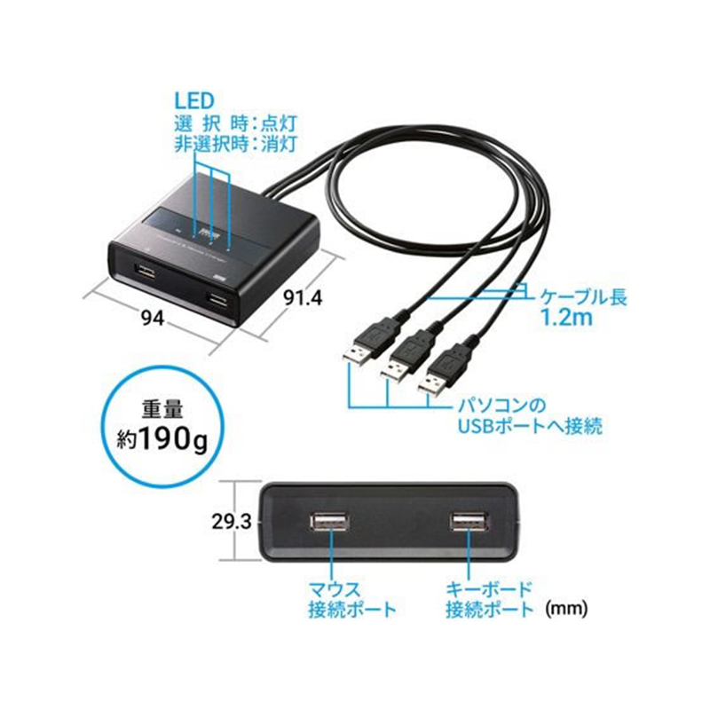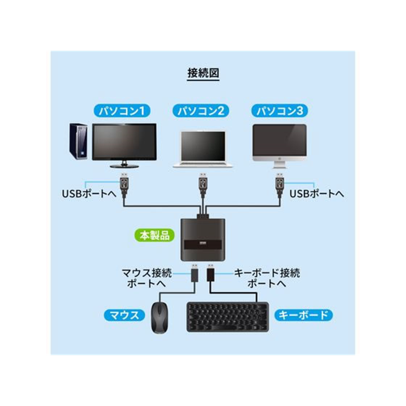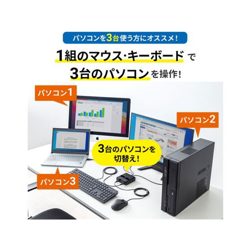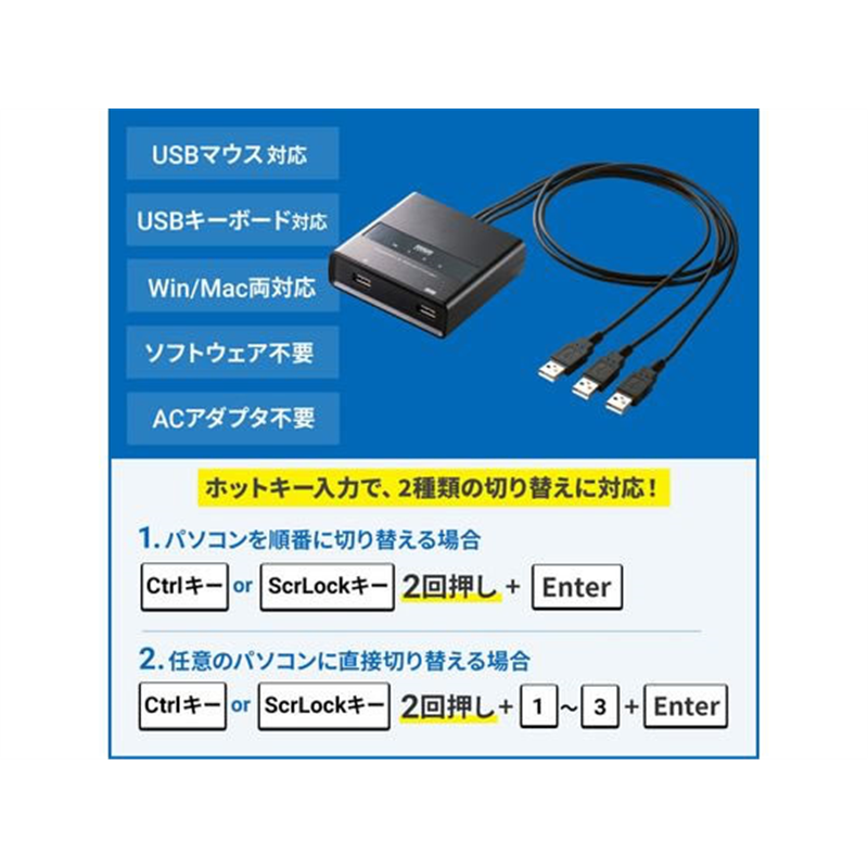サンワサプライ キーボード・マウス用パソコン切替器 3:1 SW-KM3UU 1台(ご注文単位1台)【直送品】