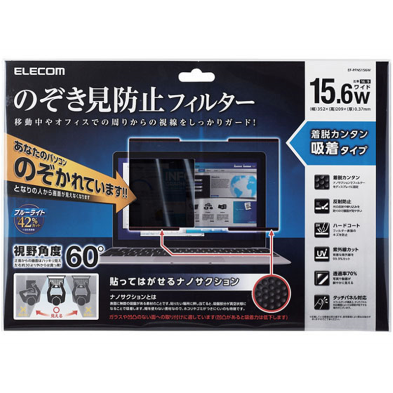 エレコム 吸着式プライバシーフィルター 15.6インチW EF-PFNS156W 1個(ご注文単位1個)【直送品】