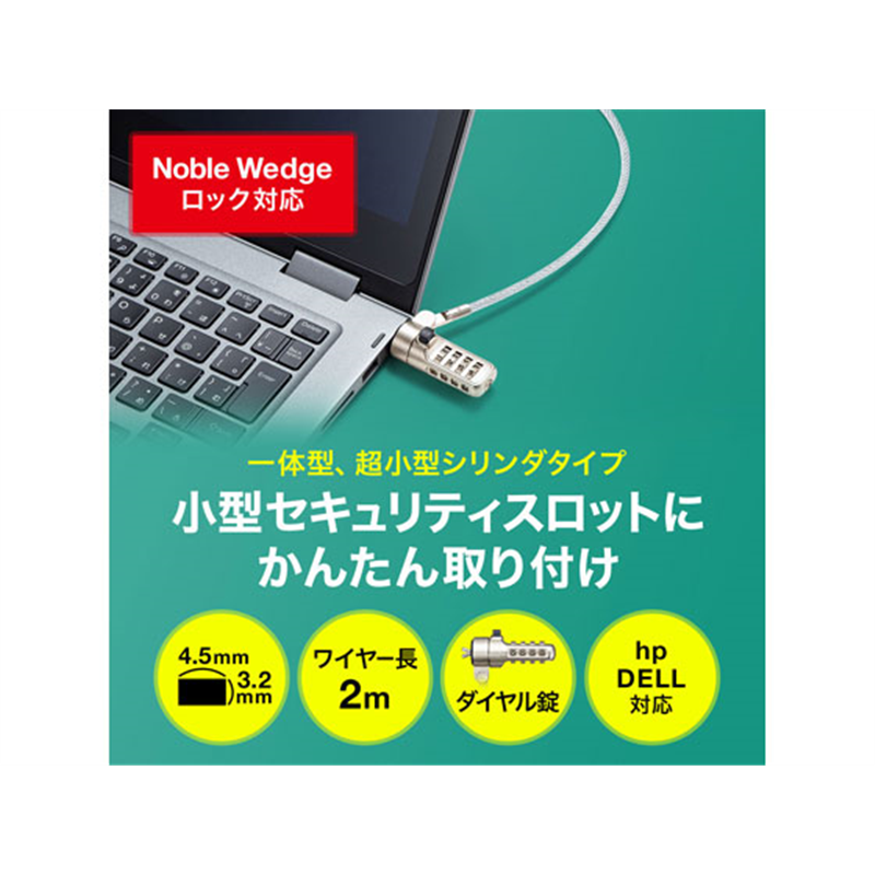 サンワサプライ Noble Wedgeスロットセキュリティワイヤー・ダイヤル錠 SLE-36S 1セット(ご注文単位1セット)【直送品】