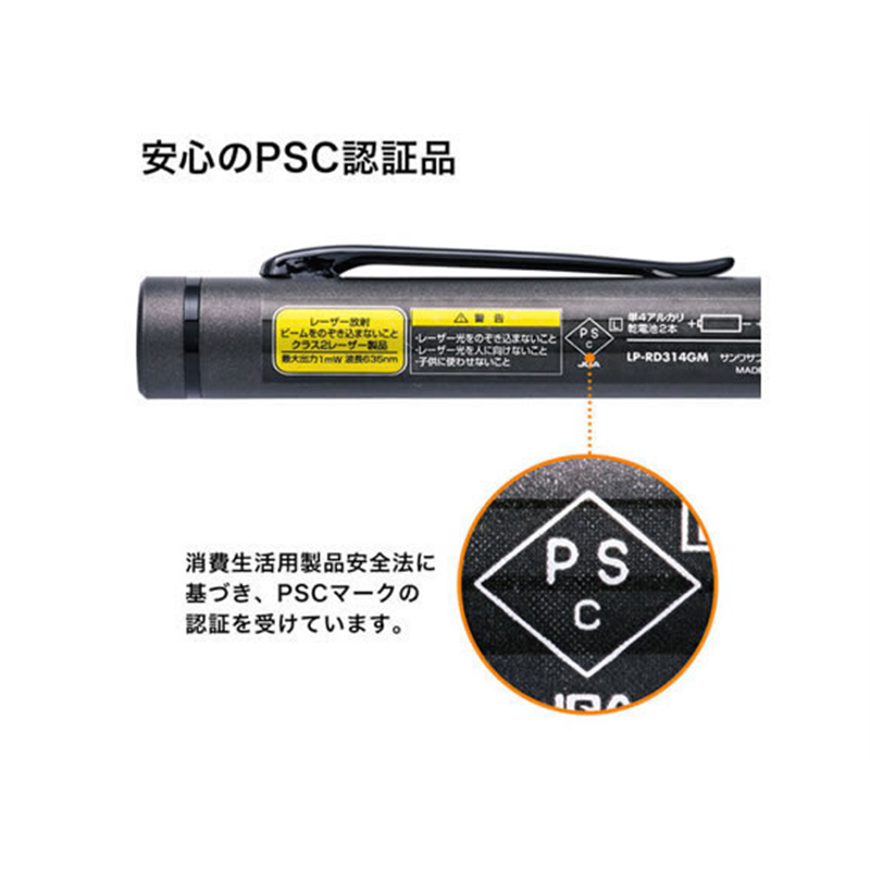 サンワサプライ 高輝度赤色レーザーポインター LP-RD314GM 1個(ご注文単位1個)【直送品】