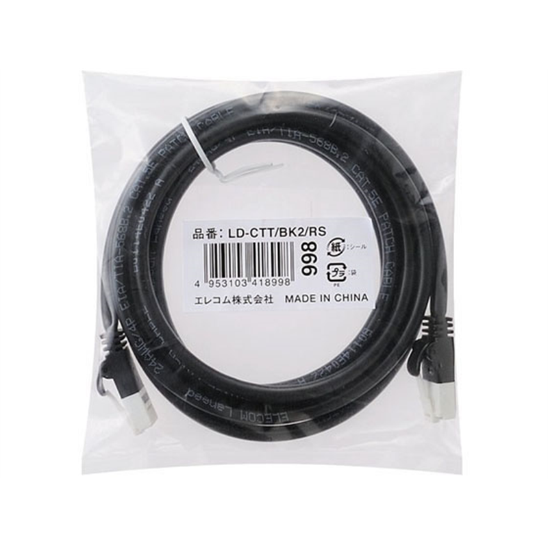 エレコム Cat5e対応ツメ折れ防止LANケーブル 2m LD-CTT BK2 RS 1個(ご注文単位1個)【直送品】