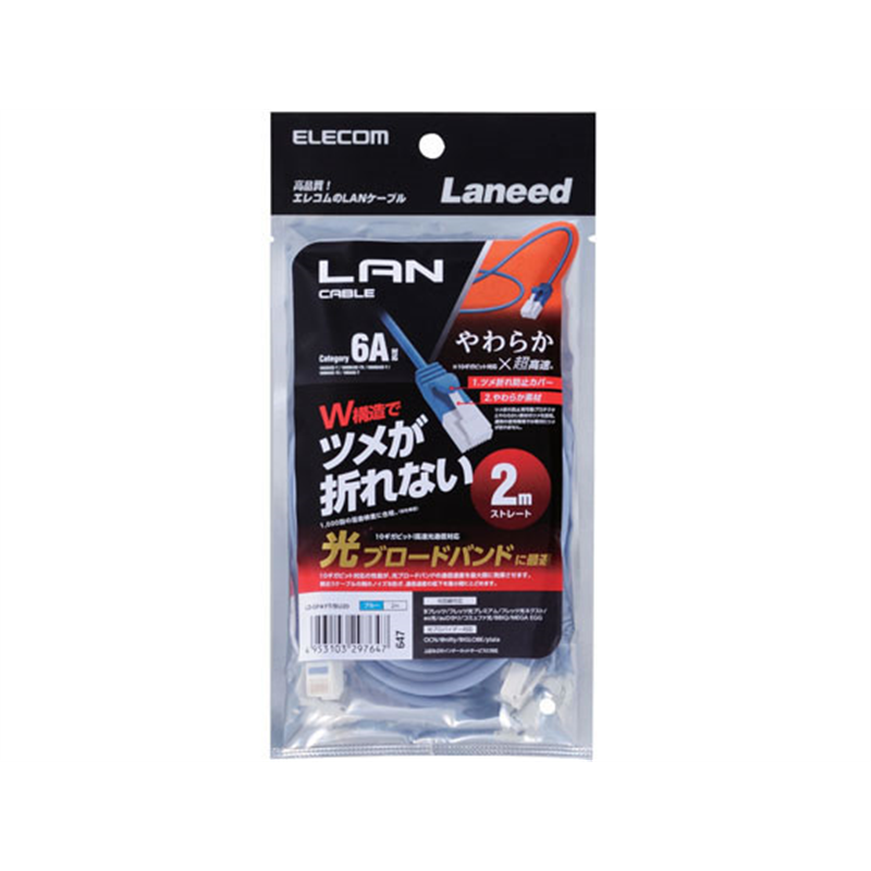 エレコム 爪折防止柔らかLANケーブルCat6A準拠 LD-GPAYT BU20 1個(ご注文単位1個)【直送品】