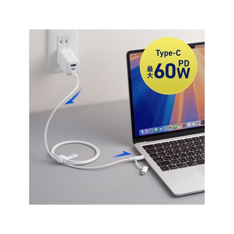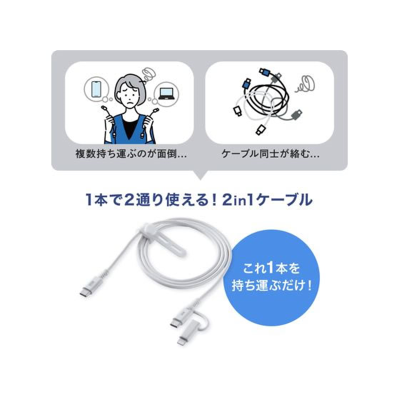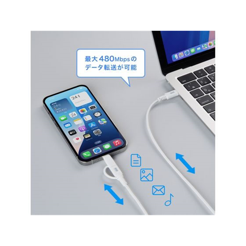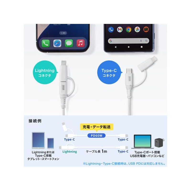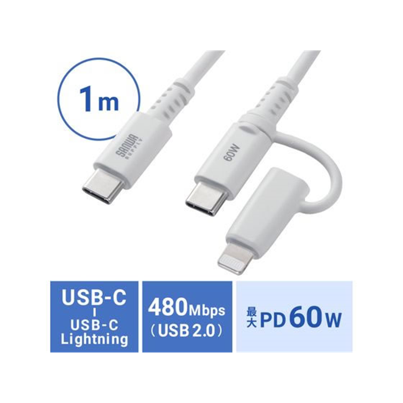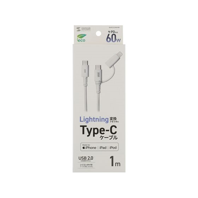 サンワサプライ USB2.0 Type-Cケーブル ホワイト KB-IPLTCCP6010W 1本(ご注文単位1本)【直送品】