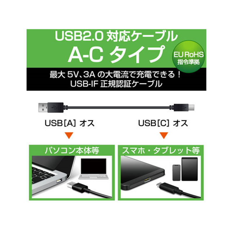 エレコム USB2.0ケーブル 認証品 A-C 2.0m MPA-AC20NBK 1個(ご注文単位1個)【直送品】