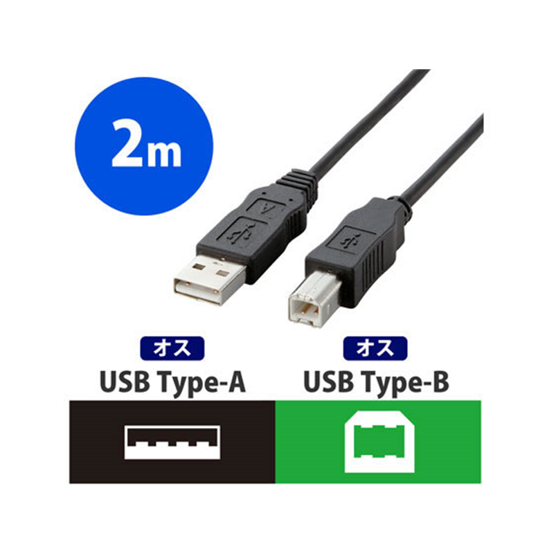 エレコム USB2.0ケーブル RoHS指令対応 A-B 2m USB2-ECO20 1個(ご注文単位1個)【直送品】