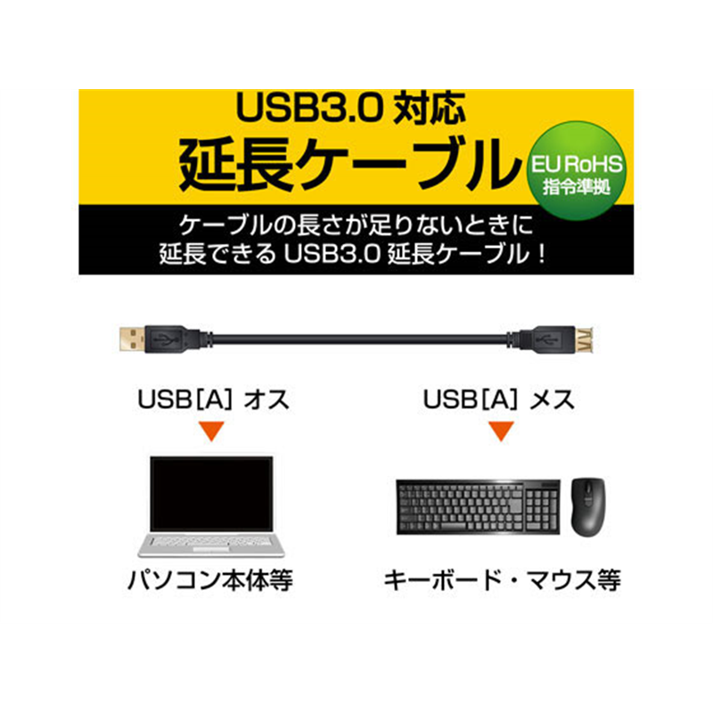 エレコム USB3.0延長ケーブル A-Aタイプ 1.5m ブラック USB3-E15BK 1本(ご注文単位1本)【直送品】