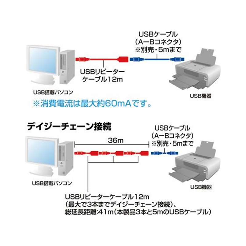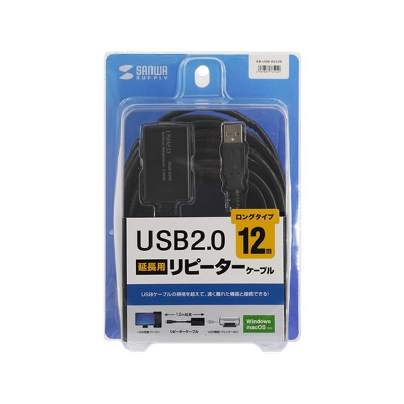 サンワサプライ 12m延長USB2.0アクティブリピーターケーブル 1本(ご注文単位1本)【直送品】