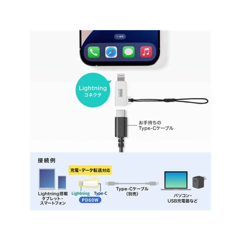 サンワサプライ Type-CtoLightning変換アダプタ AD-USB30LCFW 1個(ご注文単位1個)【直送品】
