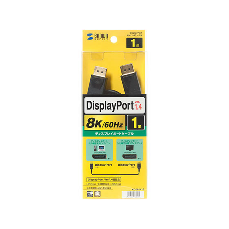 サンワサプライ DisplayPortケーブル (Ver1.4・1m) KC-DP1410 1本(ご注文単位1本)【直送品】