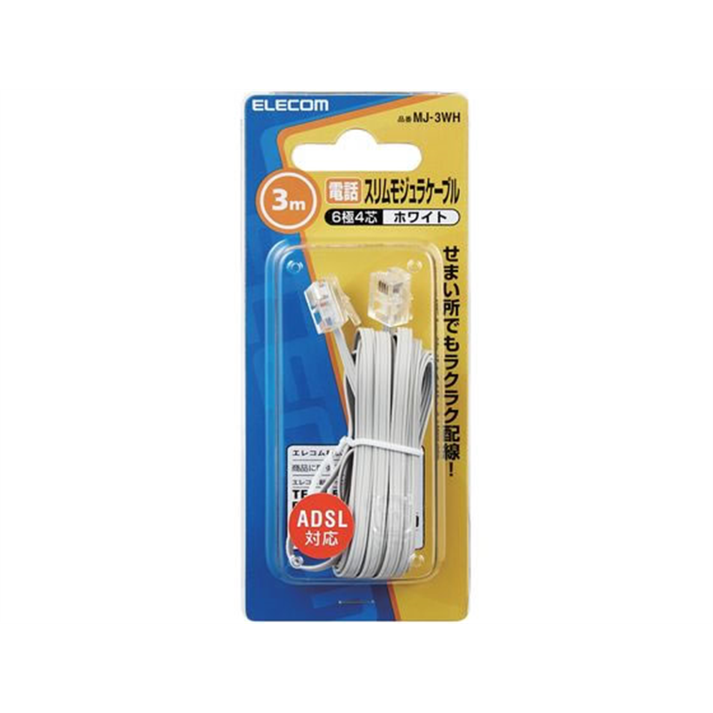 エレコム スリムモジュラーケーブル 3m ホワイト MJ-3WH 1個(ご注文単位1個)【直送品】