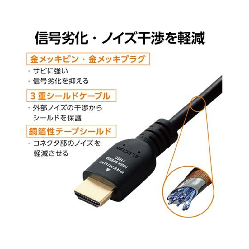エレコム HDMIケーブル 3m プレミアム 4K クロ DH-HDPS14E30BK2 1個(ご注文単位1個)【直送品】