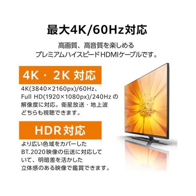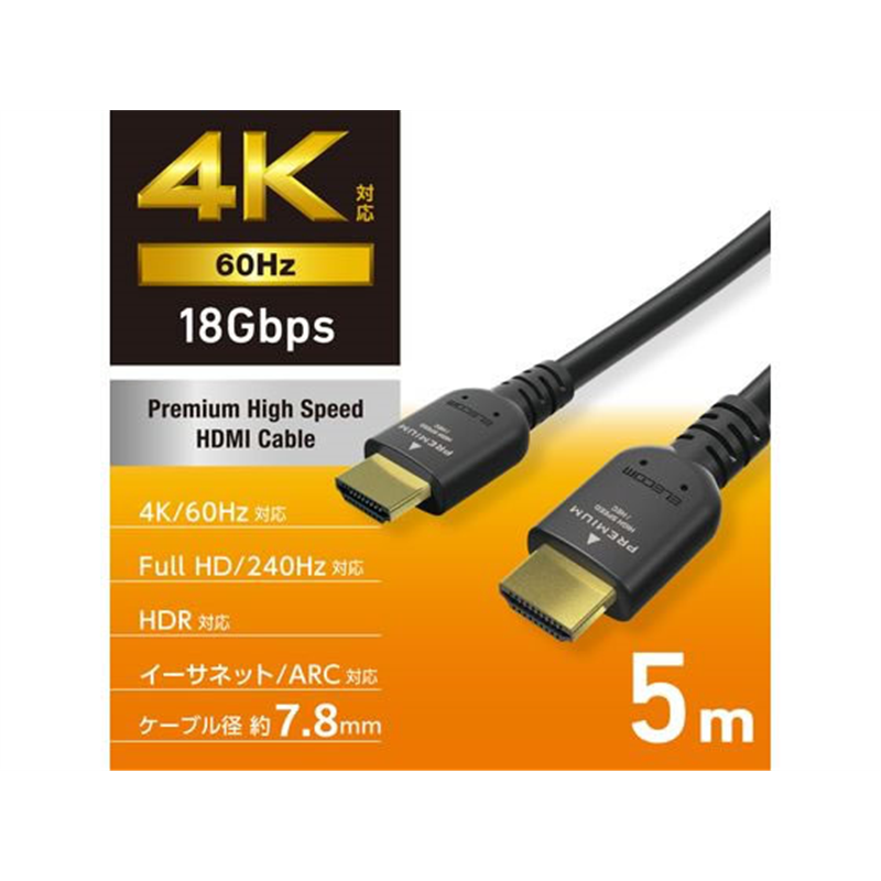 エレコム HDMIケーブル 5m プレミアム 4K クロ DH-HDPS14E50BK2 1個(ご注文単位1個)【直送品】