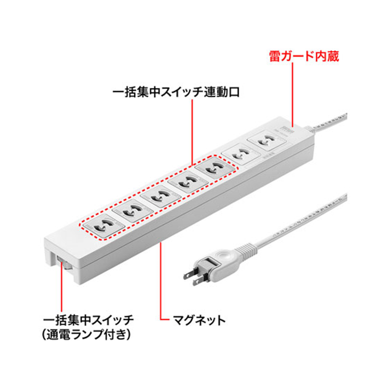 サンワサプライ 電源タップ(2P・7個口・5m) TAP-F27-5K 1本(ご注文単位1本)【直送品】