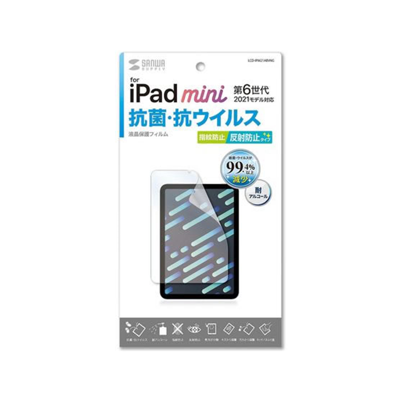 サンワサプライ iPad mini 第6世代用抗菌抗ウイルス反射防止フィルム 1枚(ご注文単位1枚)【直送品】