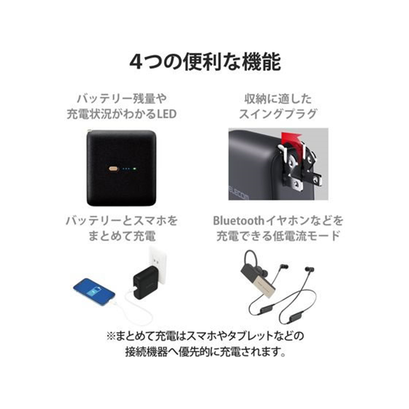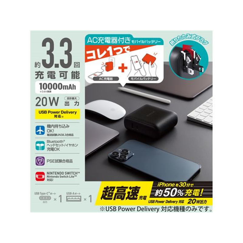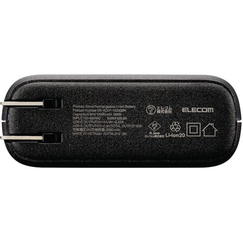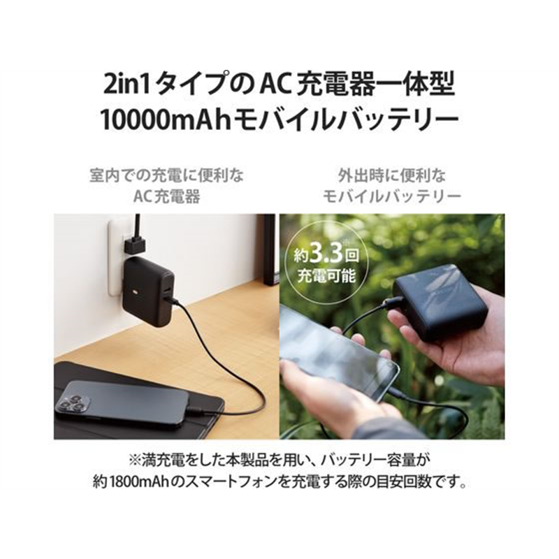 エレコム AC充電器一体モバイルバッテリー 10000mAh ブラック 1個(ご注文単位1個)【直送品】