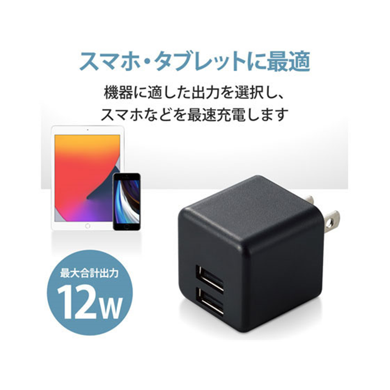 エレコム AC充電器 USBポート×2 2.4A出力 MPA-ACU11BK 1個(ご注文単位1個)【直送品】