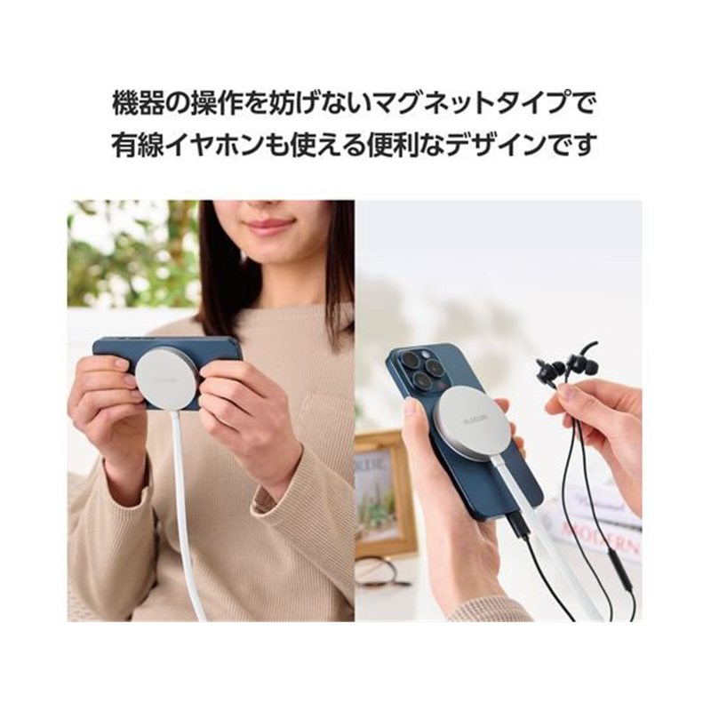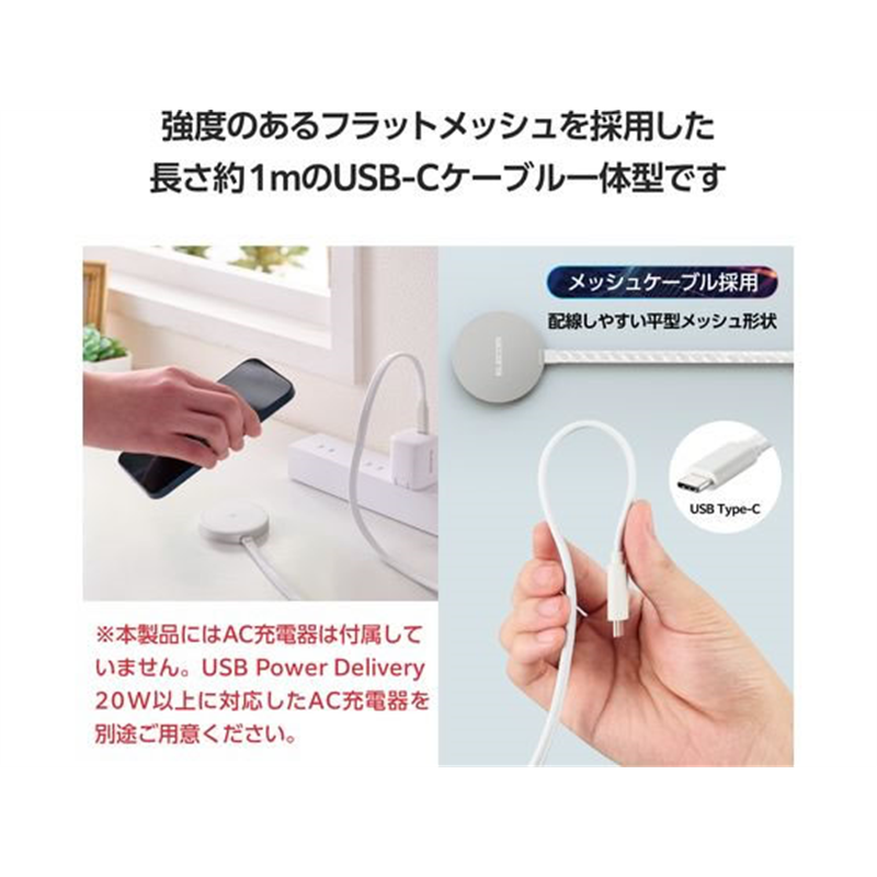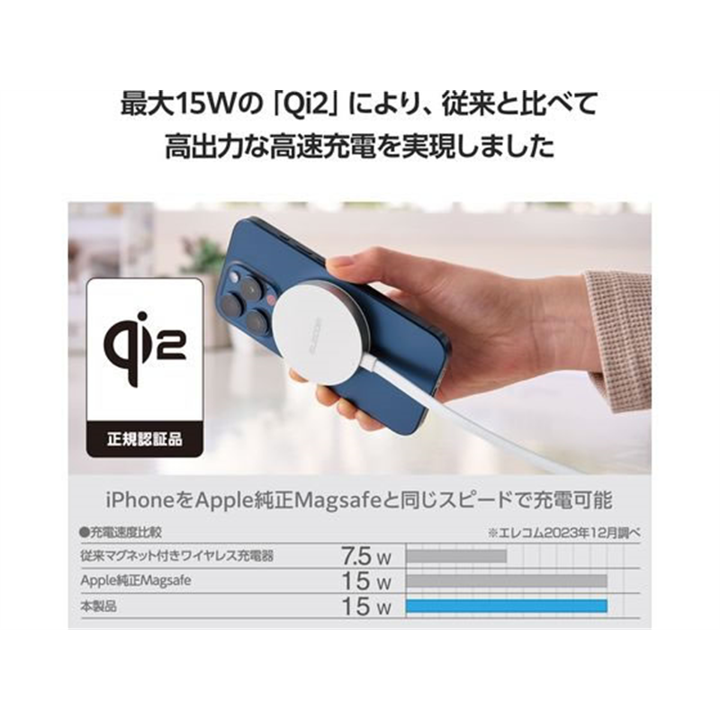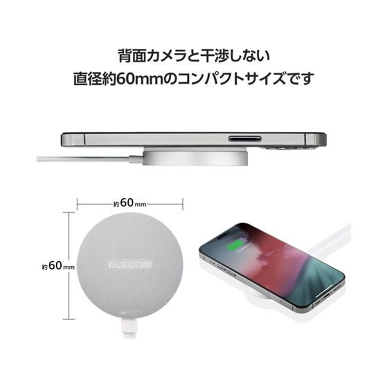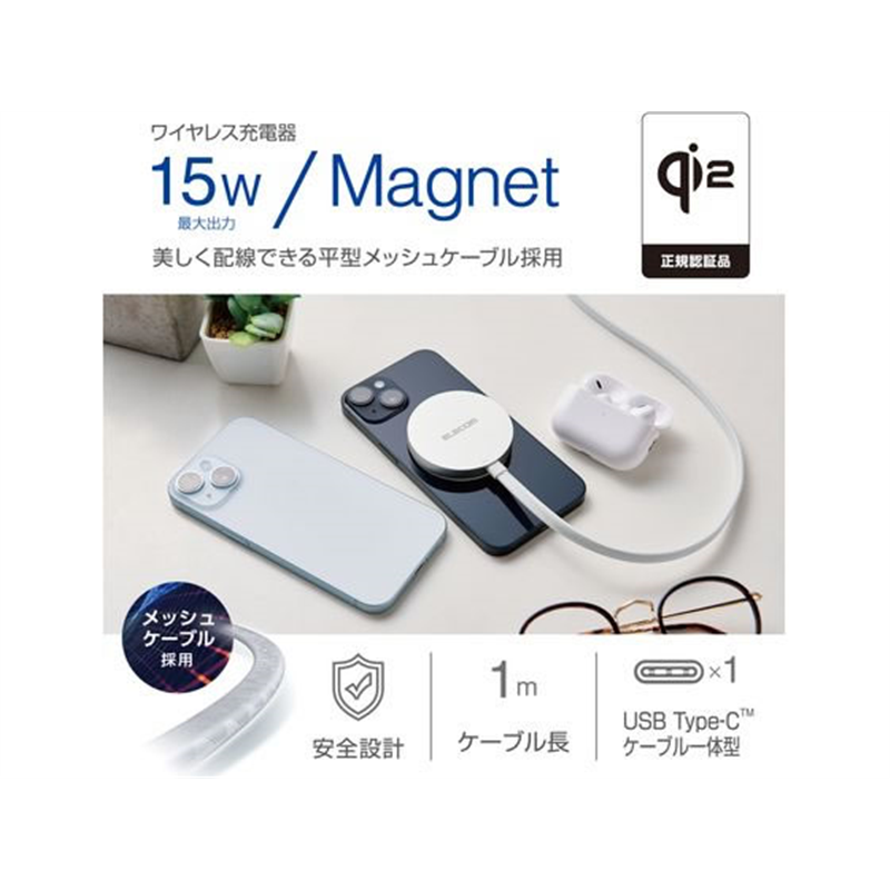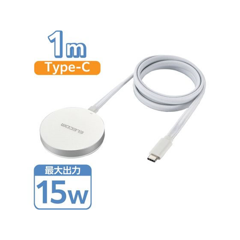 エレコム ワイヤレス充電器 Qi2 ケーブル一体 1m シルバー W-MA05SV 1個(ご注文単位1個)【直送品】